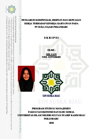 NELYATI (2018) PENGARUH KOMPENSASI,DISIPLIN DAN KEPUASAN KERJA TERHADAP KINERJA KARYAWAN PADA PT SUKA FAJAR PEKANBARU. Skripsi thesis, Universitas Islam Negeri Sultan Syarif Kasim Riau.