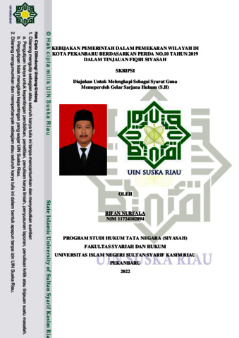RIFAN NURFALA, - (2022) Kebijakan Pemerintah Dalam Pemekaran Wilayah Di Kota Pekanbaru Berdasarkan Perda No.10 Tahun 2019 Dalam Tinjauan Fiqih Siyasah. Skripsi thesis, Universitas Islam Negeri Sultan Syarif Kasim Riau.