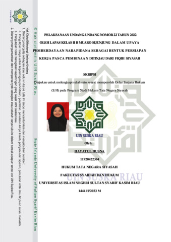 HAYATUL HUSNA, - (2023) PELAKSANAAN UNDANG-UNDANG NOMOR 22 TAHUN 2022 OLEH LAPAS KELAS II B MUARO SIJUNJUNG DALAM UPAYA PEMBERDAYAAN NARAPIDANA SEBAGAI BENTUK PERSIAPAN KERJA PASCA PEMBINAAN DITINJAU DARI FIQIH SIYASAH. Skripsi thesis, UNIVERSITAS ISLAM NEGERI SULTAN SYARIF KASIM RIAU.