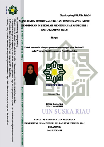ABSTRAK Rissa Rananza, (2024) : Manajemen Pembiayaan dalam Meningkatkan Mutu Pendidikan di Sekolah Menegah Atas Negeri 1 Koto Kampar Hulu Penelitian ini bertujuan untuk mengetahui 1) manajemen pembiayaan dalam peningkatan mutu Pendidikan di Sekolah Menengah Atas Negeri 1 Koto Kampar Hulu, 2) untuk mengetahui faktor pendukung dan penghambat manajemen pembiayaan dalam peningkatan mutu Pendidikan di Sekolah Menengah Atas Negeri 1 Koto Kampar Hulu. Penelitian ini menggunakan metode kualitatif dengan informan utama yaitu kepala sekolah, serta informan pendukung yaitu bendahara sekolah dan wakil kepala sekolah bidang kurikulum. Objek penelitian ini adalah Sekolah Menengah Atas Negeri 1 Koto Kampar Hulu. Hasil penelitian menunjukkan bahwa: 1) Manajemen kesiswaan dalam upaya meningkatkan mutu lulusan dengan beberapa tahapan yaitu a)Perencanaan pembiayaan melibatkan seluruh komponen pendidikan dan dilakukan secara komprehensif, b)Pelaksanaan pembiayaan mencakup dua tahapan utama, yaitu penerimaan dan pengeluaran, dengan proses penerimaan yang memerlukan persetujuan dari petugas keuangan sekolah, sedangkan pengeluaran didasarkan pada rencana kegiatan yang telah ditetapkan dalam RKAS, c)pengawasan dan evaluasi dilakukan secara berkala oleh kepala sekolah dan pemerintah untuk memastikan transparansi, akuntabilitas, dan efektivitas dalam pengelolaan dana sekolah. Dengan melibatkan semua stakeholder, agar dapat mencapai mutu pendidikan yang diharapkan melalui pendapatan dan pengeluaran yang terencana dan terawasi dengan baik, 2) faktor pendukung manajemen pembiayaan meliputi tersedianya dana yang memadai, SDM yang profesional, serta keterlibatan berbagai stakeholder seperti pemerintah, kepala sekolah, komite sekolah, guru, dan masyarakat sekolah dan yang menjadi faktor penghambat seperti keterbatasan anggaran dan keterlambatan pencairan dana dari pemerintah yang dapat menghambat implementasi program peningkatan mutu pendidikan. Kata kunci : Manajemen Pembiayaan, Mutu Pendidikan