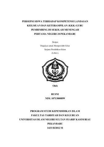 PERSEPSI SISWA TERHADAP KOMPETENSI LANDASAN KEILMUAN DAN KETERAMPILAN (KKK) GURU PEMBIMBING DI SEKOLAH MENENGAH PERTAMA NEGERI 20 PEKANBARU