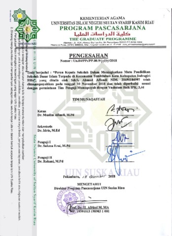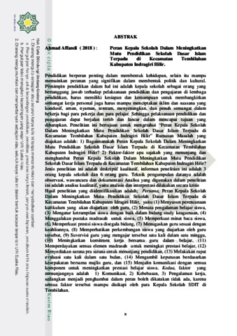 Ahmad Affandi, - (2019) Peran Kepala Sekolah Dalam Meningkatkan Mutu Pendidikan Sekolah Dasar Islam Terpadu di Kecamatan Tembilahan Kabupaten Indragiri Hilir. Thesis thesis, Universitas Islam Negeri Sultan Syarif Kasim Riau.