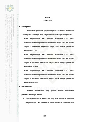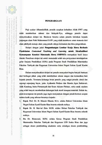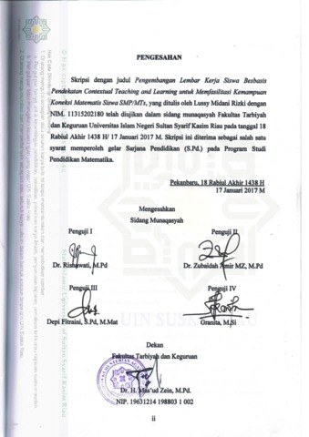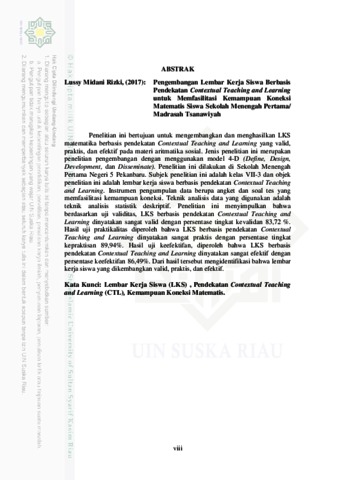 LUSSY MIDANI RIZKI (2017) PENGEMBANGAN LEMBAR KERJA SISWA BERBASIS PENDEKATAN CONTEXTUAL TEACHING AND LEARNING UNTUK MEMFASILITASI KEMAMPUAN KONEKSI MATEMATIS SISWA SEKOLAH MENENGAH PERTAMA / MADRASAH TSANAWIYAH. Skripsi thesis, Universitas Islam Negeri Sultan Syarif Kasim Riau.