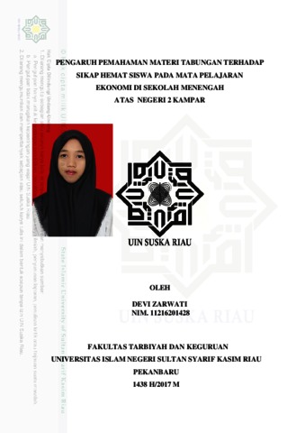 DEVI ZARWATI, 11216201428 (2017) PENGARUH PEMAHAMAN MATERI TABUNGAN TERHADAP SIKAP HEMAT SISWA PADA MATA PELAJARAN EKONOMI DI SEKOLAH MENENGAH ATAS NEGERI 2 KAMPAR. Skripsi thesis, Universitas Islam Negeri Sultan Syarif Kasim Riau.
