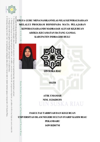 ATIK UMAMAH (2017) UPAYA GURU MENANAMKAN NILAI-NILAI KEWIRAUSAHAAN MELALUI PROGRAM BISNIS PADA MATA PELAJARAN KEWIRAUSAHAAN DI MADRASAH ALIYAH KEJURUAN ADZKIA KECAMATAN BATANG GANSAL KABUPATEN INDRAGIRI HULU. Skripsi thesis, Universitas Islam Negeri Sultan Syarif Kasim Riau.