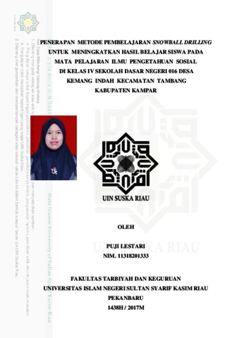 PUJI LESTARI, . 11318201333 (2017) PENERAPAN METODE PEMBELAJARAN SNOWBALL DRILLING UNTUK MENINGKATKAN HASIL BELAJAR SISWA PADA MATA PELAJARAN ILMU PENGETAHUAN SOSIAL DI KELAS IV SEKOLAH DASAR NEGERI 016 DESA KEMANG INDAH KECAMATAN TAMBANG KABUPATEN KAMPAR. Skripsi thesis, Universitas Islam Negeri Sultan Syarif Kasim Riau.