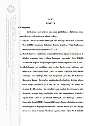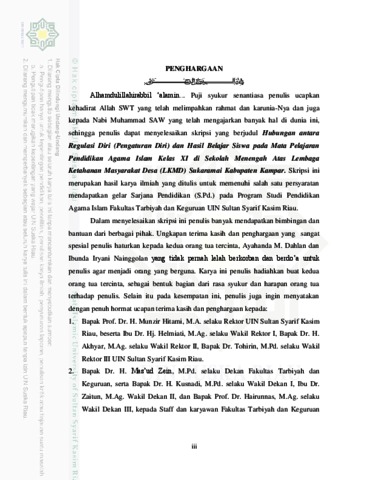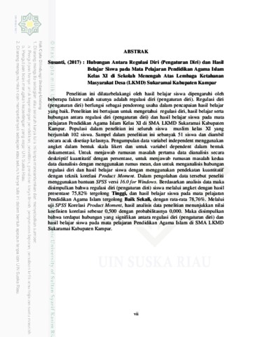 SUSANTI, 11211200890 (2017) HUBUNGAN ANTARA REGULASI DIRI (PENGATURAN DIRI) DAN HASIL BELAJAR SISWA PADA MATA PELAJARAN PENDIDIKAN AGAMA ISLAM KELAS XI DI SEKOLAH MENENGAH ATAS LEMBAGA KETAHANAN MASYARAKAT DESA (LKMD) SUKARAMAI KABUPATEN KAMPAR. Skripsi thesis, Universitas Islam Negeri Sultan Syarif Kasim Riau.