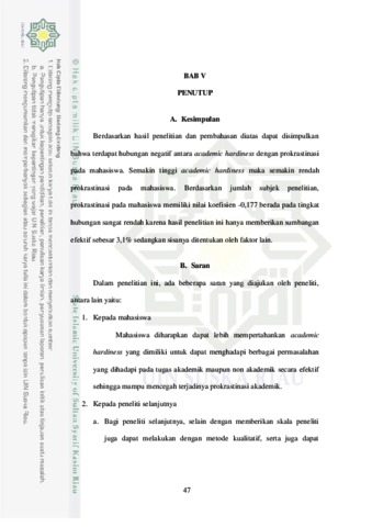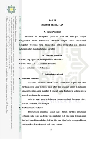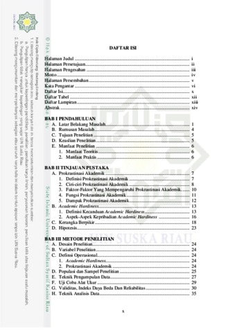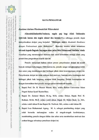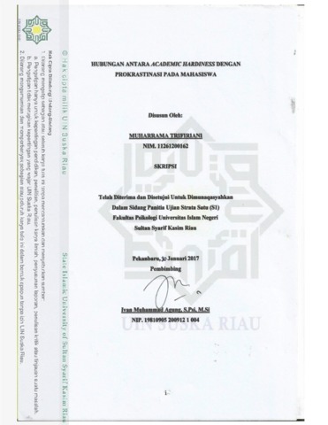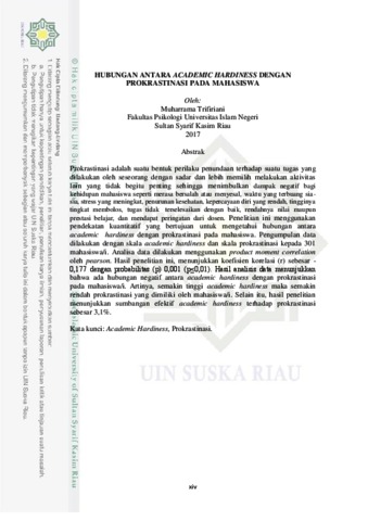 MUHARRAMA TRIFIRIANI (2017) HUBUNGAN ANTARA ACADEMIC HARDINESS DENGAN PROKRASTINASI PADA MAHASISWA. Skripsi thesis, Universitas Islam Negeri Sultan Syarif Kasim Riau.
