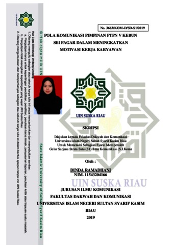 Dinda Ramadhani, - (2019) Pola Komunikasi Pimpinan PTPN V Kebun Sei Pagar Dalam Meningkatkan Motivasi Kerja Karyawan. Skripsi thesis, Universitas Islam Negeri Sultan Syarif Kasim Riau.