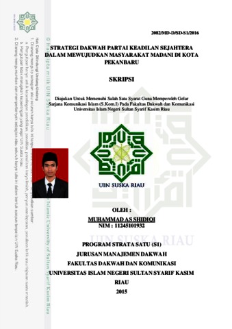 Muhammad As Shidiqi (2016) STRATEGI DAKWAH PARTAI KEADILAN SEJAHTERA DALAM MEWUJUDKAN MASYARAKAT MADANI DI KOTA PEKANBARU. Skripsi thesis, Universitas Islam Negeri Sultan Syarif Kasim Riau.