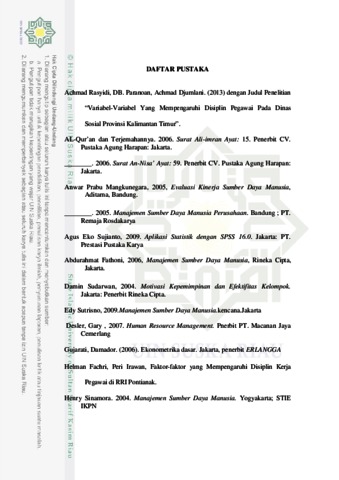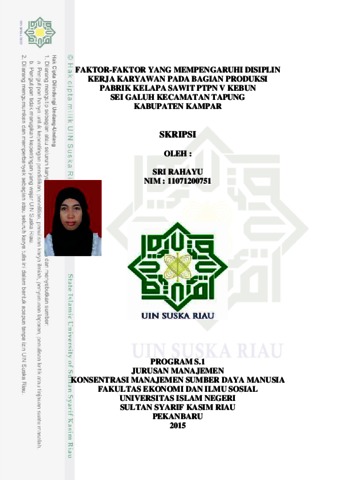 Sri Rahayu (2016) FAKTOR-FAKTOR YANG MEMPENGARUHI DISIPLIN KERJA KARYAWAN PADA BAGIAN PRODUKSI PABRIK KELAPA SAWIT PTPN V KEBUN SEI GALUH KECAMATAN TAPUNG KABUPATEN KAMPAR. Skripsi thesis, Universitas Islam Negeri Sultan Syarif Kasim Riau.