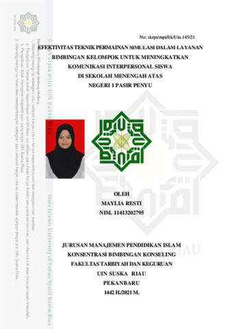 ABSTRAK Maylia Resti, (2020): Efektivitas Teknik Permainan Simulasi dalam Layanan Bimbingan Kelompok untuk Meningkatkan Komunikasi Interpersonal Siswa di Sekolah Menengah Atas Negeri 1 Pasir Penyu Kabupaten Indragiri Hulu Penelitian ini bertujuan untuk mengetahui komunikasi interperonal siswa sebelum dan sesudah diberikan teknik permainan simulasi dalam layanan bimbingan kelompok. Jenis Penelitian ini adalah penelitian pre-eksperimen dengan jenis randomized pre-test-post-test control group. Populasi Penelitian ini sebanyak 260 siswa Sekolah Menengah Atas Negeri 1 Pasir Penyu Kabupaten Indragiri Hulu. Sampel diambil sebanyak 16 siswa yang mengalami masalah dalam komunikasi interpersonal melalui teknik purposive sampling. Teknik pengumpulan data dilakukan dengan observasi, angket dan dokumentasi. Adapun untuk analisis data, peneliti menggunakan uji paired sample t-test. Hasil penelitian ini menunjukkan bahwa komunikasi interpersonal siswa sebelum diberikan layanan bimbingan kelompok menggunakan teknik permainan simulasi skor yang diperoleh di kelas eksperimen sebesar 523 dengan rata-rata 65,38 dan skor dikelas kontrol sebesar 568 dengan rata-rata 71 dan setelah dilakukan layanan bimbingan kelompok menggunakan teknik permainan simulasi skor di kelas eksperimen berubah menjadi 1253 dengan rata-rata 156,63 dan skor di kelas kontrol sebesar 876 dengan rata-rata 109,5. Sehingga dari hasil penelitian dapat dikatakan bahwa teknik permainan simulasi dalam layanan bimbingan kelompok efektif untuk meningkatkan komunikasi interpersonal siswa di sekolah dengan pengaruh 85% dan termasuk kategori sangat efektif. Kata Kunci : Teknik Permainan Simulasi, Layanan Bimbingan Kelompok, Komunikasi Interpersonal