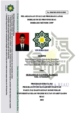 Muhammad Taufiqul Rahman, Rahman (2021) Pelaksanaan Evaluasi Program Lapak Berkah di IZI Provinsi RIAU Berbasis Metode CIPP. Skripsi thesis, Universitas Islam Negeri Sultan Syarif Kasim Riau.