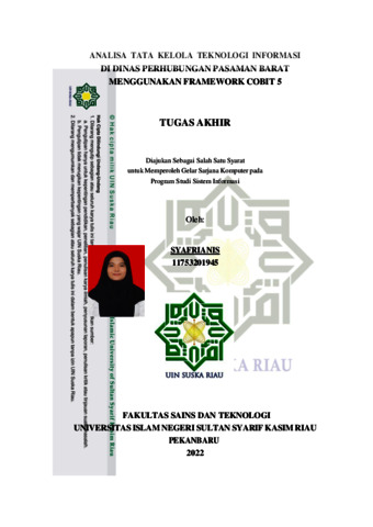 Syafrianis, - (2022) ANALISA TATA KELOLA TEKNOLOGI INFORMASI DI DINAS PERHUBUNGAN PASAMAN BARAT MENGGUNAKAN FRAMEWORK COBIT 5. Skripsi thesis, Universitas Islam Negri Sultan Syarif Kasim Riau.