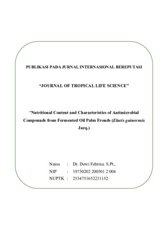 Dewi Febrina, - (2022) Nutritional Content and Characteristics of Antimicrobial Compounds from Fermented Oil Palm Fronds (Elaeis guineensis Jacq.) (Korespondensi). Universitas Islam Negeri Sultan Syarif Kasim Riau.
