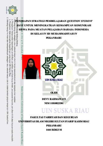 ABSTRAK Devy Rahmawati, (2022): Penerapan Strategi Pembelajaran Question Student Have untuk Meningkatkan Kemampuan Komunikasi Siswa pada Muatan Pelajaran Bahasa Indonesia di Kelas IV SD Muhammadiyah IV Pekanbaru. Penelitian ini bertujuan untuk mengetahui peningkatan kemampuan komunikasi siswa pada muatan pelajaran Bahasa Indonesia melalui penerapan Strategi Question Student Have di kelas IV SD Muhammadiyah IV Pekanbaru. Penelitian ini merupakan penelitian tindakan kelas yang subjek penelitiannya adalah 1 orang guru dan 24 orang siswa, dan objek penelitiannya adalah penerapan strategi pembelajaran Question Student Have dan kemampuan komunikasi siswa. Penelitian ini dilakukan dalam dua siklus dan setiap siklus terdiri dari dua kali pertemuan. Teknik pengumpulan data yang digunakan adalah teknik observasi dan dokumentasi. Sedangkan teknik analisis data yang digunakan adalah analisis deskriptif dengan presentase. Hasil penelitian dan analisis data menunjukkan bahwa penerapan strategi pembelajaran Question Student Have dapat meningkatkan kemampuan komunikasi siswa. Hal ini dapat diketahui dari grafik peningkakatannya sejak sebelum tindakan perbaikan hingga tindakan perbaikan pada siklus II. Sebelum tindakan perbaikan pembelajaran dilakukan, nilai rata-rata kemampuan komunikasi siswa hanya mencapai 41,66 dengan kategori kurang. Setelah dilakukan tindakan perbaikan pembelajaran pada siklus I pertemuan pertama, kemampuan komunikasi siswa meningkat menjadi 58,33 namun masih berada pada kategori kurang, dan pada pertemuan kedua meningkat menjadi 64,23 dan masih berada pada kategori kurang. Kemudian pada siklus II pertemuan ketiga, kemampuan komunikasi siswa meningkat menjadi 70,82 tetapi masih berada pada kategori kurang, dan pada pertemuan keempat nilai rata-rata kemampuan komunikasi siswa meningkat menjadi 86,10 dan sudah berada pada kategori baik. Dengan demikian dapat disimpulkan bahwa penerapan strategi pembelajaran Question Student Have dapat meningkatkan kemampuan komunikasi siswa pada muatan pelajaran Bahasa Indonesia di kelas IV SD Muhammadiyah IV Pekanbaru. Kata Kunci: Strategi Pembelajaran Question Student Have, Kemampuan Komunikasi Siswa