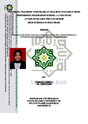 Yohana Mirna,, - (2023) Exploring the Teacher’s Strategies in Teaching English in High-Performing Senior High School: A Case Study at One of Islamic Private Senior High Schools In Pekanbaru. Thesis thesis, UNIVERSITAS ISLAM NEGERI SULTAN SYARIF KASIM RIAU.