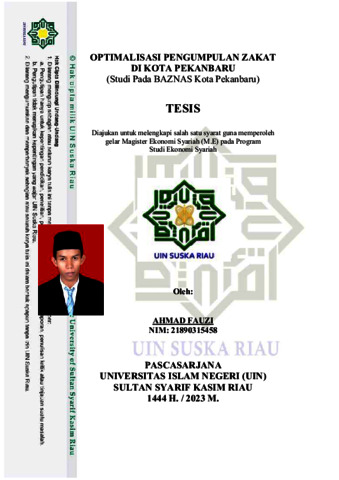 AHMAD FAUZI, AF (2023) Optimalisasi Pengumpulan Zakat di Kota Pekanbaru (studi pada BAZNAS Kota Pekanbaru). Thesis thesis, UIN Suska Riau.