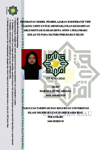 HARTICA PUTRI ARDANA, - (2023) PENERAPAN MODEL PEMBELAJARAN KOOPERATIF TIPE TALKING CHIPS UNTUK MENINGKATKAN KEMAMPUAN ARGUMENTASI ILMIAH SISWA MTSN 1 PEKANBARU KELAS VII PADA MATERI PERUBAHAN IKLIM. Skripsi thesis, UNIVERSITAS ISLAM NEGERI SULTAN SYARIF KASIM RIAU.