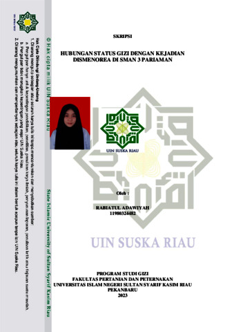 RABIATUL ADAWIYAH, - (2023) HUBUNGAN STATUS GIZI DENGAN KEJADIAN DISMENOREA DI SMAN 3 PARIAMAN. Skripsi thesis, UIN SUSKA RIAU.