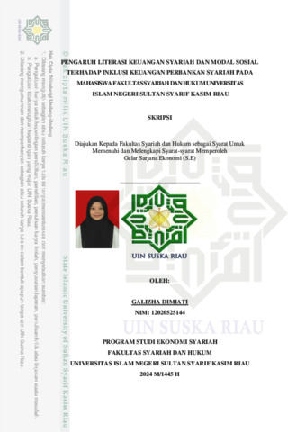 GALIZHA DIMIATI, - (2024) PENGARUH LITERASI KEUANGAN SYARIAH DAN MODAL SOSIAL TERHADAP INKLUSI KEUANGAN PERBANKAN SYARIAH PADA MAHASISWA FAKULTAS SYARIAH DAN HUKUM UNIVERSITAS ISLAM NEGERI SULTAN SYARIF KASIM RIAU. Skripsi thesis, Universitas Islam Negeri Sultan Syarif Kasim Riau.