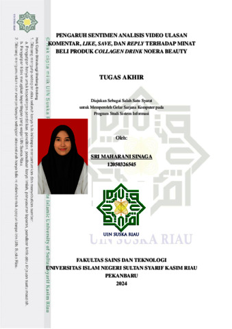 SRI MAHARANI SINAGA, - (2024) PENGARUH SENTIMEN ANALISIS VIDEO ULASAN KOMENTAR, LIKE, SAVE, DAN REPLY TERHADAP MINAT BELI PRODUK COLLAGEN DRINK NOERA BEAUTY. Skripsi thesis, Universitas Islam Negeri Sultan Syarif Kasim Riau.