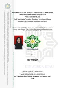 NADA KHARISMA, - (2024) PENGARUH LEVERAGE, FINANCIAL DISTRESS, BIAYA POLITIK DAN INVESTMENT OPPORTUNITY SET TERHADAP PRUDENCE AKUNTANSI (Studi Empiris pada Perusahaan Manufaktur Sektor Industri Barang Konsumsi yang Terdaftar di BEI Periode 2020-2022). Skripsi thesis, Universitas Islam Negeri Sultan Syarif Kasim Riau.