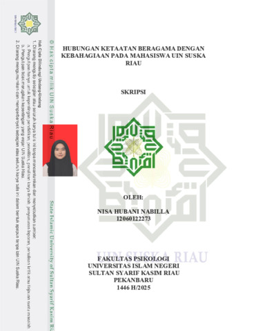 NISA HUBANI NABILLA, - (2025) HUBUNGAN KETAATAN BERAGAMA DENGAN KEBAHAGIAAN PADA MAHASISWA UIN SUSKA RIAU. Skripsi thesis, UNIVERSITAS ISLAM NEGERI SULTAN SYARIF KASIM RIAU.