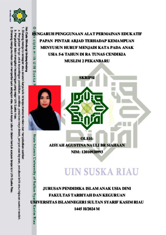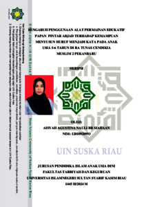 AISYAH AGUSTINA NAULI BR SIAHAAN, - (2025) PENGARUH PENGGUNAAN ALAT PERMAINAN EDUKATIF PAPAN PINTAR ABJAD TERHADAP KEMAMPUAN MENYUSUN HURUF MENJADI KATA PADA ANAK USIA 5-6 TAHUN DI RA TUNAS CENDIKIA MUSLIM 2 PEKANBARU. Skripsi thesis, UNIVERSITAS ISLAM NEGERI SULTAN SYARIF KASIM RIAU.