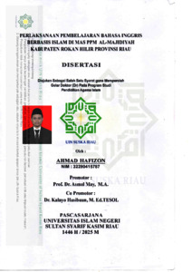 Ahmad Hafizon, - (2025) Implementation of English Learning Based on Islam at MAS PPM Al-Majidiyah Rokan Hilir Regency, Riau Province. Disertasi thesis, UNIVERSITAS ISLAM NEGERI SULTAN SYARIF KASIM RIAU.