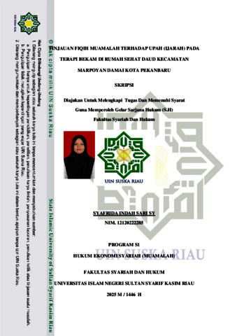 Syafrida Indah Sari Sy, - (2025) TINJAUAN FIQIH MUAMALAH TERHADAP UPAH (IJARAH) PADA TERAPI BEKAM DI RUMAH SEHAT DAUD KECAMATAN MARPOYAN DAMAI KOTA PEKANBARU. Skripsi thesis, Universitas iIslam Negeri Sultan Syarif Kasim Riau.