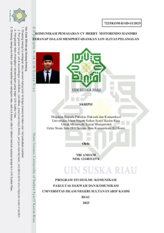 TRI ANDANI, - (2025) KOMUNIKASI PEMASARAN CV HERRY MOTORINDO MANDIRI PERANAP DALAM MEMPERTAHANKAN LOYALITAS PELANGGAN. Skripsi thesis, UIN SUSKA RIAU.