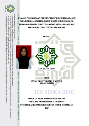 INTAN GINASTY RISMA WAHYUNI, - (2025) ANALISIS PELAKSANAAN PRINSIP-PRINSIP INOVASI PELAYANAN PUBLIK MELALUI SISTEM ONLINE SINGLE SUBMISSION RISK BASED APPROACH DI DINAS PENANAMAN MODAL PELAYANAN TERPADU SATU PINTU KOTA PEKANBARU. Skripsi thesis, Universitas Islam Negeri Sultan Syarif Kasim Riau.