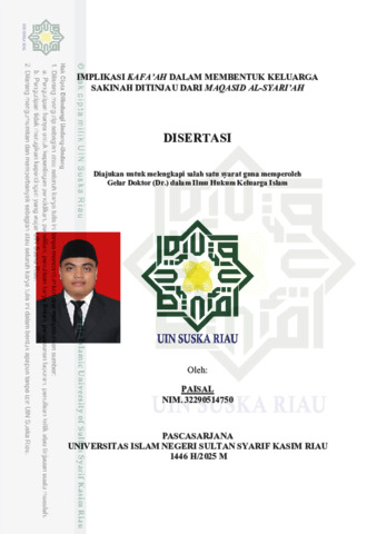 PAISAL, - (2025) IMPLIKASI KAFA’AH DALAM MEMBENTUK KELUARGA SAKINAH DITINJAU DARI MAQASID AL-SYARI’AH. Disertasi thesis, Universitas Islam Negeri Sultan Syarif Kasim Riau.