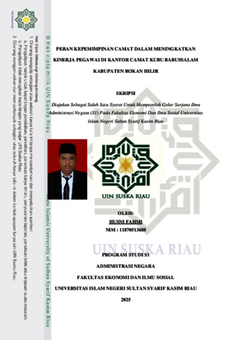 HUSNI FAHMI, - (2025) PERAN KEPEMIMPINAN CAMAT DALAM MENINGKATKAN KINERJA PEGAWAI DI KANTOR CAMAT KUBU BABUSSALAM KABUPATEN ROKAN HILIR. Skripsi thesis, UNIVERSITAS ISLAM NEGERI SULTAN SYARIF KASIM RIAU.