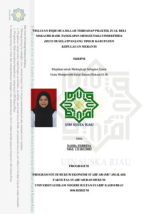 ABSTRAK Nadia Febrina, (2025): Tinjauan Fiqh Muamalah Terhadap Praktik Jual Beli Makauhe Hasil Tangkapan Menggunakan Insektisida Decis di Selatpanjang Timur Kabupaten Kepulauan Meranti Penelitian ini dilatarbelakangi oleh praktik jual beli yang dilakukan para penjual yang menangkap makauhe dengan menggunakan insektisida Decis, lalu menjual hasil tangkapan tersebut kepada pembeli, yang mana akan dikonsumsi oleh pembeli tersebut. Tindakan tersebut tentunya melanggar ajaran Islam yang terdapat dalam Al-Qur‘an surah Al-Ma‘idah ayat 88, yang mengingatkan sekaligus mengajarkan untuk mengkonsumsi makanan yang halal, bergizi, dan tidak terdapat unsur yang membahayakan. Dalam penelitian ini penulis mengambil rumusan masalah yaitu: bagaimana praktik jual beli makauhe hasil tangkapan menggunakan insektisida decis di Selatpanjang Timur Kabupaten Kepulauan Meranti dan bagaimana tinjauan fiqih muamalah terhadap jual beli makauhe hasil tangkapan menggunakan insektisida decis di Selatpanjang Timur Kabupaten Kepulauan Meranti. Penelitian ini termasuk penelitian lapangan (field research), yang dimana subjek dari penelitian ini adalah penjual dan pembeli makauhe hasil tangkapan menggunakan insektisida decis. Populasi penelitian ini terdiri dari 10 informan, yang terdiri dari 3 penjual dan 7 pembeli. Sampel yang digunakan penulis dalam penelitian ini menggunakan teknik total sampling yaitu teknik pengambilan sampel yang menggunakan seluruh anggota populasi sebagai sampel. Penelitian ini menggunakan metode pengambilan data yang meliputi observasi, wawancara dan dokumentasi, sedangkan teknik analisis data yang digunakan adalah analisis deskriptif kualitatif Berdasarkan hasil penelitian ini, dapat disimpulkan bahwa praktik jual beli makauhe yang menggunakan insektisida Decis dilakukan setiap hari. Proses penangkapan dilakukan pada pagi hari dengan menggunakan insektisida Decis dan air dalam ember. Dan menurut tinjauan fiqih muamalah, jual beli makauhe hasil tangkapan menggunakan insektisida Decis ini dianggap sah, karena makauhe yang akan dijual kepada pembeli telah melalui proses pembersihan yang dilakukan oleh penjual. Dengan demikian, unsur mudharat yang ada pada makauhe tersebut telah hilang, dan ketika dikonsumsi oleh pembeli, tidak menimbulkan efek negatif pada tubuh. Kata Kunci: Fiqih Muamalah, Jual Beli, Makauhe, Insektisida Decis