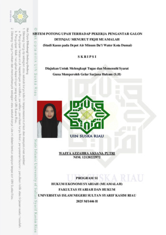ABSTRAK Waffa Azzahra Aksana Putri, 2025: Sistem Potong Upah Terhadap Pekerja Pengantar Galon Ditinjau Menurut Fiqh Muamalah (Studi Kasus pada Depot Air Minum Da’i Water Kota Dumai) Dalam praktik muamalah sering kali terjadinya permasalahan khususnya mengenai ijarah dalam praktiknya seringkali terjadinya permasalahan terkait mfdengan sistem potong terhadap upah pekerja. Seperti sistem potong upah di Depot Air Minum Da‟i Water, potongan upah ini dapat terjadi karena 3 hal: adanya kerusakan terhadap motor dan galon, ketika pembeli membayar galon menggunakan kupon, dan ketika pembeli berhutang. Rumusan masalah dari penelitian ini adalah bagaimana sistem potong upah pekerja pengantar galon di Depot Air Minum Da‟i Water, dan bagaimana tinjauan fiqh muamalah terhadap sistem potong upah pekerja pengantar galon di Depot Air Minum Da‟i Water. Penelitian ini adalah penelitian lapangan atau (field research), subjek penelitian ini adalah pemilik depot dan pekerja pengantar galon. Populasinya terdiri dari 8 orang, yang mencakup 2 pemilik depot dan 6 pekerja pengantar galon. Sampel yang digunakan adalah seluruh populasi tersebut, dengan menggunakan teknik total sampling. Metode pengumpulan data yang digunakan dalam penelitian ini meliputi observasi, wawancara, studi pustaka, dan dokumentasi. Sementara itu, teknik analisis data yang diterapkan adalah metode analisis deskriptif kualitatif, yang bertujuan untuk menggambarkan serta menganalisis data secara sistematis berdasarkan fakta yang ditemukan di lapangan. Berdasarkan hasil pnelitian dapat disimpulkan bahwa: pelaksanaan sistem potong upah pada pekerja pengantar galon di Depot Air Minum Da‟i Water adalah pelaksanaan sistem potong upah dikarenakan 3 hal: adanya kerusakan terhadap motor dan galon, ketika pembeli membayar galon menggunakan kupon, dan ketika pembeli berhutang. Tinjauan Fiqh Muamalah terhadap sistem potong upah pekerja pengantar galon di Depot Air Minum Da‟i Water yang dilakukan oleh pemilik depot hukumnya boleh karena sudah adanya kerelaan yang dikatakan oleh pekerja saat ijab qabul. Kata Kunci: Pekerja Pengantar Galon, Fiqh Muamalah, Ijarah, Sistem Potong Upah