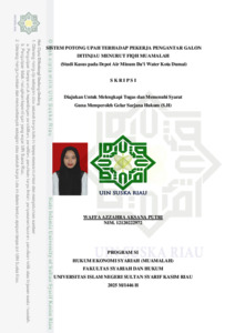 WAFFA AZZAHRA AKSANA PUTRI, - (2025) SISTEM POTONG UPAH TERHADAP PEKERJA PENGANTAR GALON DITINJAU MENURUT FIQH MUAMALAH (Studi Kasus pada Depot Air Minum Da’i Water Kota Dumai). Skripsi thesis, Universitas Islam Negeri Sultan Syarif Kasim Riau.