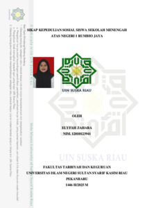 ABSTRAK Elyfah Zahara (2025) : Sikap Kepedulian Sosial Siswa Sekolah Menengah Atas Negeri 1 Rumbio Jaya Penelitian ini bertujuan untuk mengetahui sikap kepedulian sosial siswa di Sekolah Menengah Atas Negeri 1 Rumbio Jaya dan faktor-faktor yang mempengaruhinya. Jenis penelitian yang digunakan adalah penelitian kualitatif. Informan utama dalam penelitian adalah siswa yang berjumlah 5 orang. Informan pendukung yaitu waka kurikulum, kesiswaan, dan 2 guru Pendidikan Agama Islam. Teknik pengumpulan data melalui wawancara, observasi dan dokumentasi. Teknik analisis data melalui reduksi data, penyajian data dan penarikan kesimpulan. Maka hasil penelitian menunjukkan bahwa: Sikap kepedulian sosial siswa sekolah Menengah Atas Negeri 1 Rumbio Jaya sudah memperlihatkan kepedulian sosial dalam bentuk membantu satu sama lain saat mengalami kesulitan dan bekerja sama saat melakukan suatu kegiatan yang membutuhkan banyak orang, Serta faktor yang mempengaruhi sikap kepedulian sosial siswa adalah dari faktor keluarga serta masyarakat dan faktor teknologi. Kata Kunci: Sikap, Kepedulian Sosial