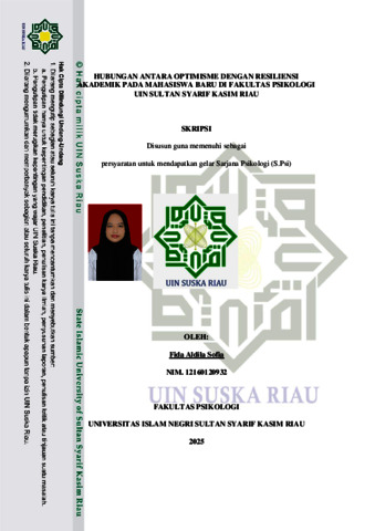 Fida Aldila Sofia, - (2025) HUBUNGAN ANTARA OPTIMISME DENGAN RESILIENSI AKADEMIK PADA MAHASISWA BARU DI FAKULTAS PSIKOLOGI UIN SULTAN SYARIF KASIM RIAU. Skripsi thesis, Universitas Islam Negeri Sultan Syarif Kasim Riau.