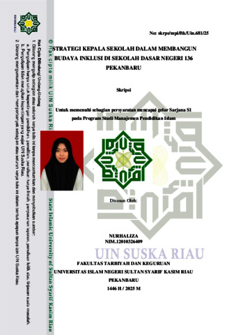 ABSTRAK Nurhaliza, (2024) : Strategi Kepala Sekolah Dalam Membangun Budaya Inklusi Di Sekolah Dasar Negeri 136 Pekanbaru Penelitian ini merupakan kajiann tentang strategi kepala sekolah dalam membangun budaya inklusi. Tujuan dari penelitian ini adalah : 1. Untuk mengetahui bagaimana strategi kepala sekolah dalam membangun budaya inklusi di SDN 136 Pekanbaru. 2. Untuk mengetahui apa saja yang menjadi tantangan dalam membangun budaya inklusi di SDN 136 Pekanbaru. Jenis penelitian yang digunakan adalah deskriptif dengan pendekatan kualitatif. Subjek penelitian ini adalah kepala sekolah, wakil kepala sekolah, dan guru dengan teknik pengumpulan data berupa wawancara, observasi, dan dokumentasi. Hasil penelitian menunjukkan bahwa strategi kepala sekolah dalam membangun budaya inklusi di SDN 136 Pekanbaru adalah melalui a) meningkatkan pemahaman terkait budaya inklusi kepada tenaga pendidik dan seluruh anggota di sekolah melalui pelatihan terkait pemahaman inklusi. b) mengedukasi dan menanamkan sikap toleransi dan saling menghargai dan menerima keberagaman dan perbedaan yang ada kepada seluruh siswa. c) mengoptimalkan sarana dan prasarana yang mendukung pembelajaran terutama bagi siswa berkebutuhan khusus. d) keterlibatan orangtua dan masyarakat dalam mendukung tercapainya tujuan budaya inklusi di sekolah. Adapun tantangan dalam membangun budaya inklusi di SDN 136 Pekanbaru. a) kurangnya pemahaman guru, staf, dan orangtua tentang inklusi dan cara menangani nya. b) keterbatasan fasilitas fisik bagi siswa dengan disabilitas. c) kurangnya tenaga pendidik yang terlatih untuk menangani siswa berkebutuhan khusus seperti guru pendamping khusus (GPK). d) kurangnya dukungan dari orangtua dan masyarakat. Kata Kunci : Strategi, Kepala Sekolah, Budaya Inklusi.