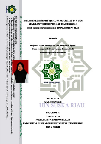 NELPAWITA, - (2025) IMPLEMENTASI PRINSIP EQUALITY BEFORE THE LAW DAN KEADILAN TERHADAP PELAKU PEMERKOSAAN (Studi kasus pemerkosaan nomor 229/Pid.B/2024/PN BKN). Skripsi thesis, Universitas Islam Negeri Sultan Syarif Kasim Riau.