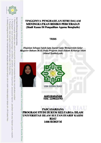 ALFI HASANAH, - (2025) TINGGINYA PENGHASILAN ISTRI DALAM MENINGKATKAN RESIKO PERCERAIAN (Studi Kasus Di Pengadilan Agama Bengkalis). Thesis thesis, UNIVERSITAS ISLAM NEGERI SULTAN SYARIF KASIM RIAU.