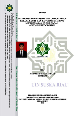 MUHAMMAD HARUN ATILLAH, - (2025) SIFAT BIOFISIK PUPUK KASCING DARI CAMPURAN DAUN KELAPA SAWIT DAN KOTORAN KAMBING MENGGUNAKAN CACING TANAH AFRICAN NIGHT CRAWLER. Skripsi thesis, UIN SUSKA RIAU.