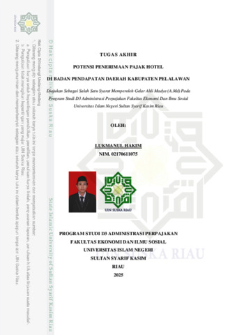 LUKMANUL HAKIM, - (2025) POTENSI PENERIMAAN PAJAK HOTEL DI BADAN PENDAPATAN DAERAH KABUPATEN PELALAWAN. Laporan thesis, Universitas Islam Negeri Sultan Syarif Kasim Riau.