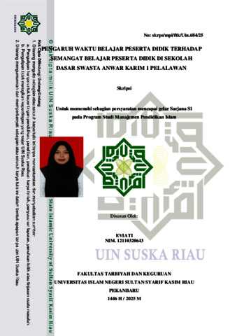 EVIATI, - (2025) PENGARUH WAKTU BELAJAR PESERTA DIDIK TERHADAP SEMANGAT BELAJAR PESERTA DIDIK DI SEKOLAH DASAR SWASTA ANWAR KARIM 1 PELALAWAN. Skripsi thesis, UNIVERSITAS ISLAM NEGERI SULTAN SYARIF KASIM RIAU.