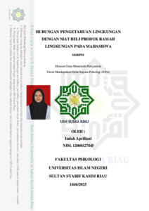 INDAH APRILIANI, - (2025) HUBUNGAN PENGETAHUAN LINGKUNGAN DENGAN NIAT BELI PRODUK RAMAH LINGKUNGAN PADAMAHASISWA. Skripsi thesis, Universitas Islam Negeri Sultan Syarif Kasim Riau.