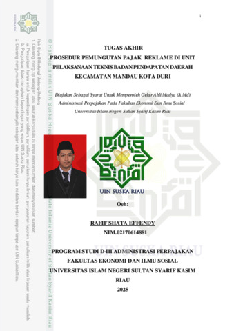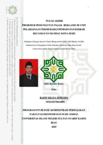 RAFIF SHATA EFFENDY, - (2025) PROSEDUR PEMUNGUTAN PAJAK REKLAME DI UNIT PELAKSANAAN TEKNIS BADAN PENDAPATAN DAERAH KECAMATAN MANDAU KOTA DURI. Laporan thesis, Universitas Islam Negeri Sultan Syarif Kasim Riau.