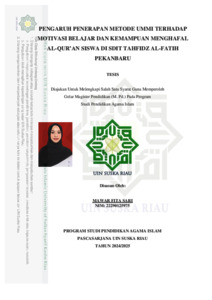 Pengaruh Penerapan Metode Ummi Terhadap Motivasi Belajar dan Kemampuan Menghafal Al-Qur’an Siswa Di SDIT Tahfidz Al-Fatih Pekanbaru