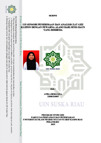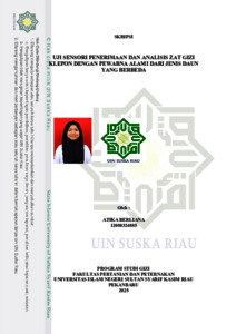 ATIKA BERLIANA, - (2025) UJI SENSORI PENERIMAAN DAN ANALISIS ZATGIZI KLEPON DENGAN PEWARNA ALAMI DARI JENIS DAUN YANG BERBEDA. Skripsi thesis, UNIVERSITAS ISLAM NEGRI SULTAN SYARIF KASIM RIAU.